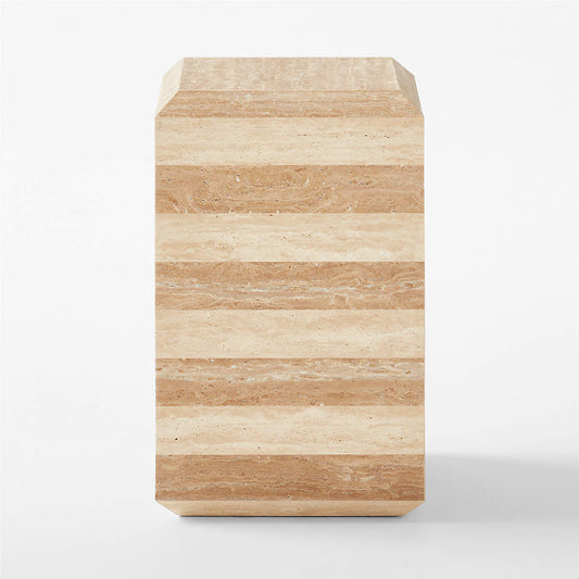 Mesa auxiliar interior y exterior mármol travertino en capas 55x35x35cm