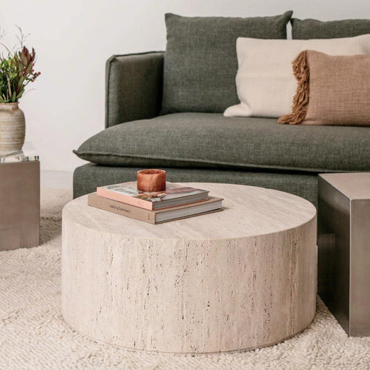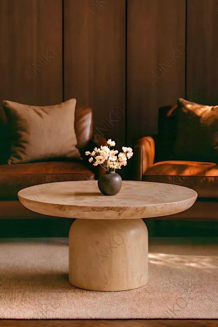 Mesa de Centro Circular Mármol Travertino Beige